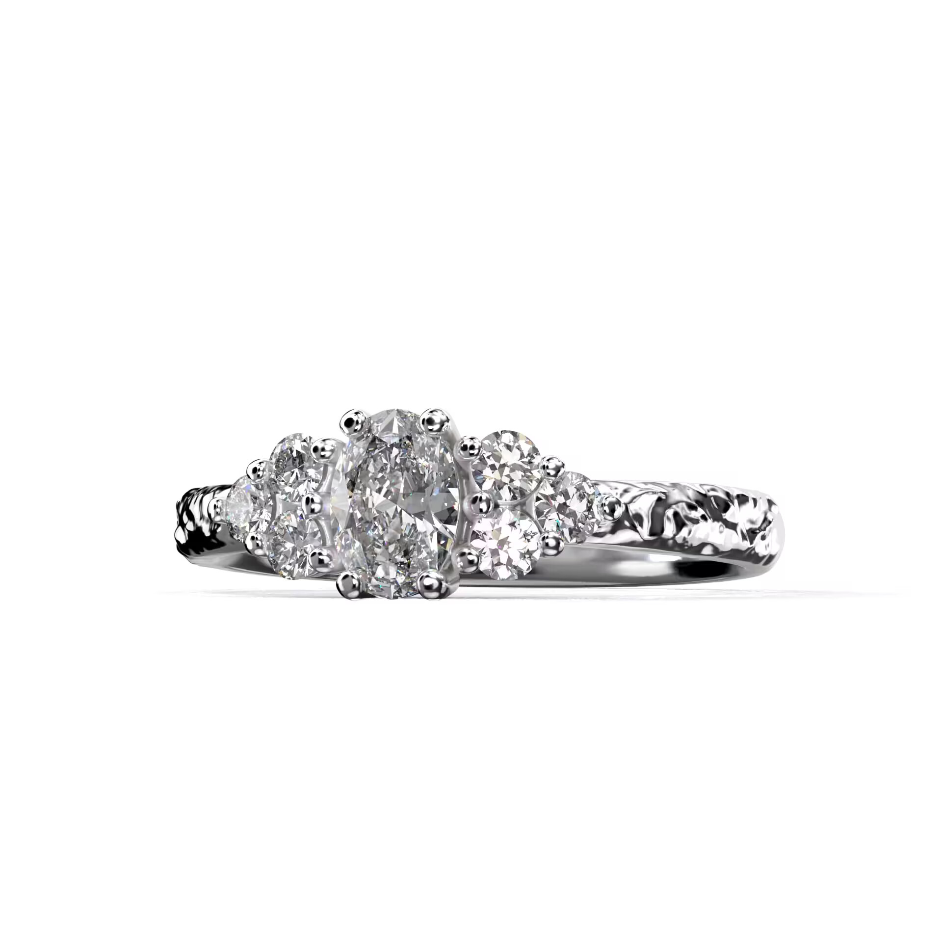Keskmine kivi (center stone) on IGI sertifikaadiga – värviklass D, puhtus VVS1, lihvimiskvaliteet erakordsest väga heani (EX-VG) ning fluorestsentsivaba. Kui soovid suuremat või naturaalset teemanti või erilahendust, saada meile päring, et leiaksime just sinu jaoks sobivaima lahenduse.
